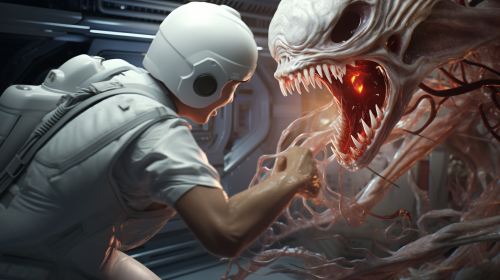 Astronaut touching an Alien sketch