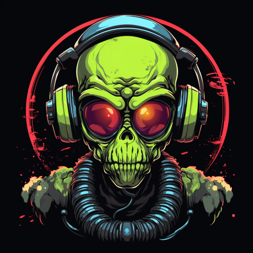 an alien astronaut. cartoon, design for a t-shirt, 3 strong colors