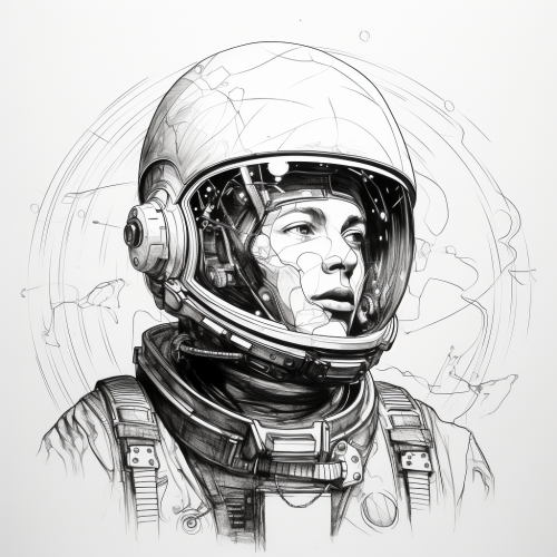 draw, sketch, an astronaut and an Alien reflected in his visor, line work, white background, no shade, low detail, design in pro create