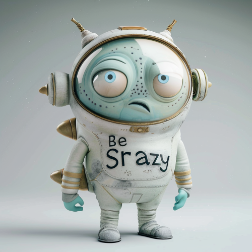 cute confused alien astronaut in Pixar style similar to minions, funny lettering "Be Srazy" --v 6.0