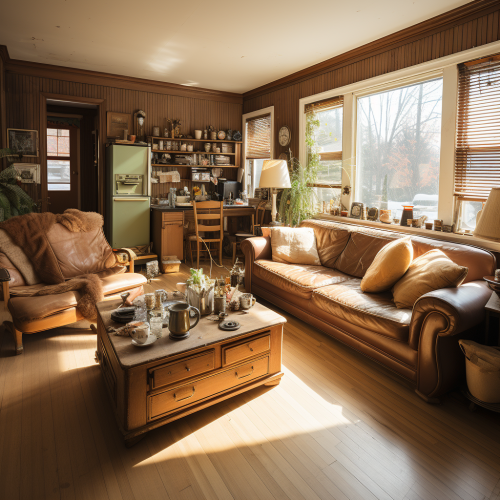 typical 1980s lower income home interior, bar room, wide angle, whole room in shot, colorful --ar 9:16 --style raw