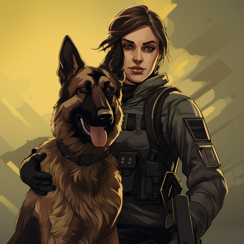 vector art of a female k9 handler wearing tactical gear and a German shepherd