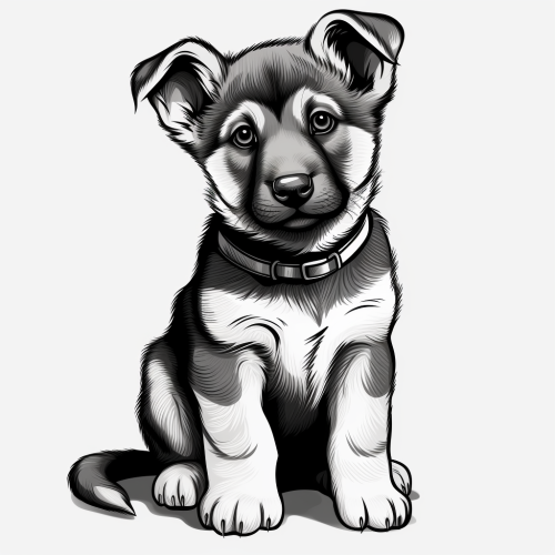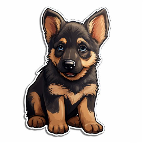 German Shepherd Puppy, Sticker, Adorable, Muted Color, Rough Charcoal, Contour, Vector, White Background, Detailed --s 250