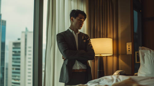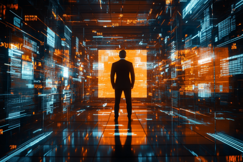 Athletic Man Working in Cozy Room with Futuristic View
