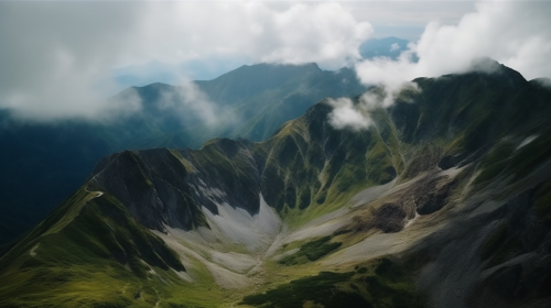 cinematic shot of large mountain formations in japan filled with clouds, colorful, hyperrealistic, movie, UHD, 4K --ar 16:9 --s 250 --v 5.0 --q .5