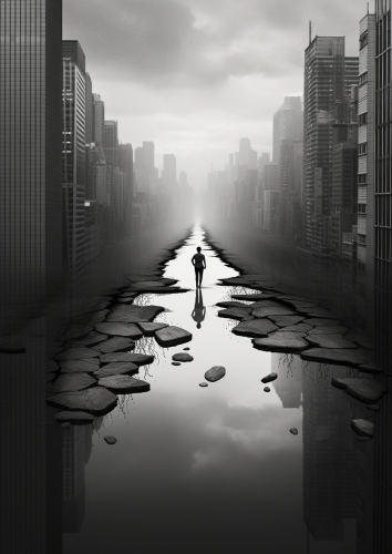 simple, clear straight lines, the city is in my heart, black and white, photo manipulation --ar 5:7 --v 5.2