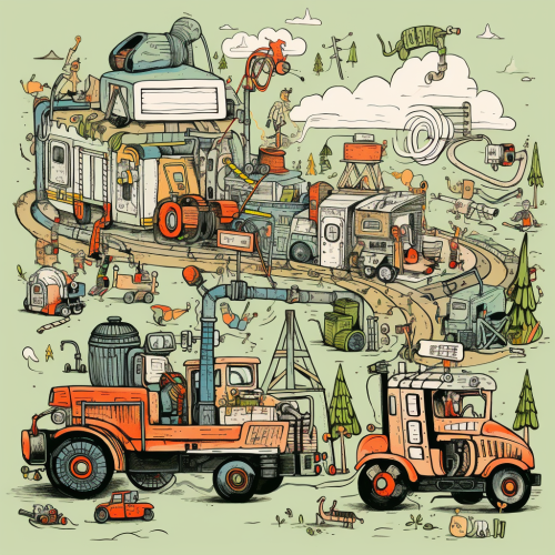 a photorealistic illustration of car mechanics using a mobile device to communicate with other employees