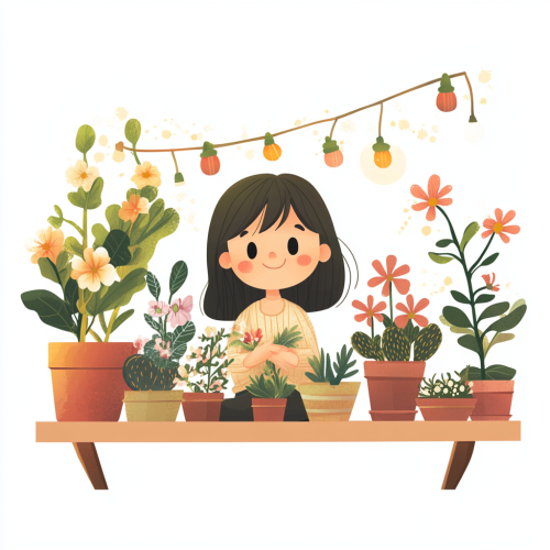 A woman tending to a garden, planting flowers with a soft, content expression Mood: Peace, connection to nature, lasting beauty Style: Vincent Van Gogh, Perspective: close-up, early afternoon, Colors: Bright yellows, rich greens, pinks, and blues for the flowers, Background: a lush garden, swirls of leaves and petals, with a sun-dappled path leading to a small house. --ar 9:16