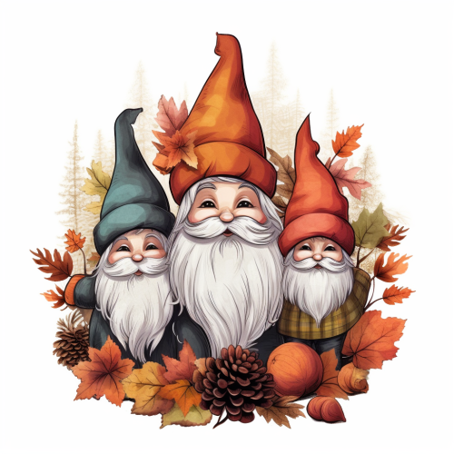 Autumn pumpkin patch scene with fallen leaves and trees.