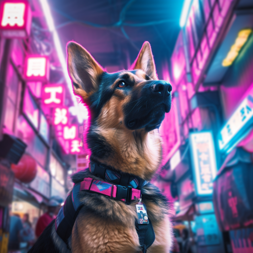 a futuristic street scene in tokyo japan, the year is 2050, robots walk the streets alongside people, created in an artistic, painterly style; --ar 64:45