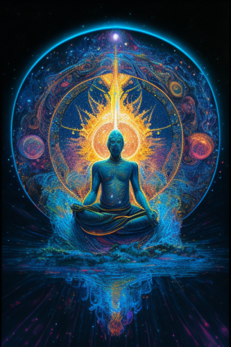Background The background can be a galaxy, deep space or a universal wave of energy. This offers a broad perspective to reflect the theme of spiritual awakening. A burst of energy in shades of blue, purple and gold can symbolize consciousness and awareness. Main Image: In the center may be a meditating figure or the symbol of the third eye. The third eye emphasizes the main theme of the video as it represents awareness and spiritual opening. There may be energy waves or aura rings around the figure. Color Palette: Blue, purple, gold and white tones can be used. These colors symbolize spiritual consciousness and awakening. Touches of gold represent divine power and inner enlightenment, while white can signify purity and purification. Symbols and Details: Symbols such as eyes, lotus flowers, or bursts of light can be added. These make the video's themes of spiritual awakening, awareness and energy even more visually powerful. --ar 16:9