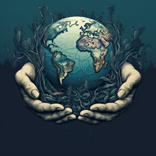 The Earth as a human head. It is listening with a hand cupped to one ear. Smiling and happy