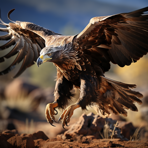 A golden eagle in flight, Side view, time delay method, colorism, 32K, HDR --v 5.2 --s 750 --style raw