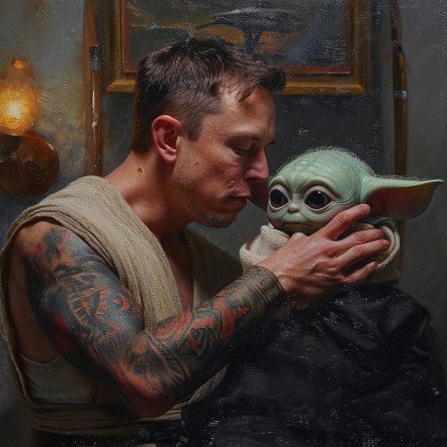 Heisenberg, the character from breaking bad goes to the star wars universe, Mandalorian armor, lifelike realism, Grogu baby yoda, photorealistic --ar 9:16 --s 750