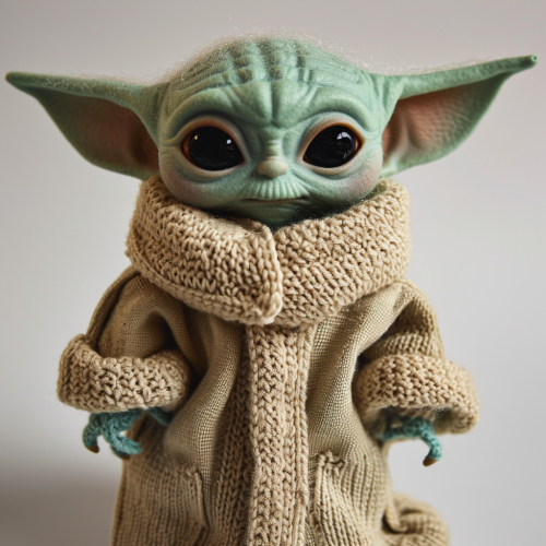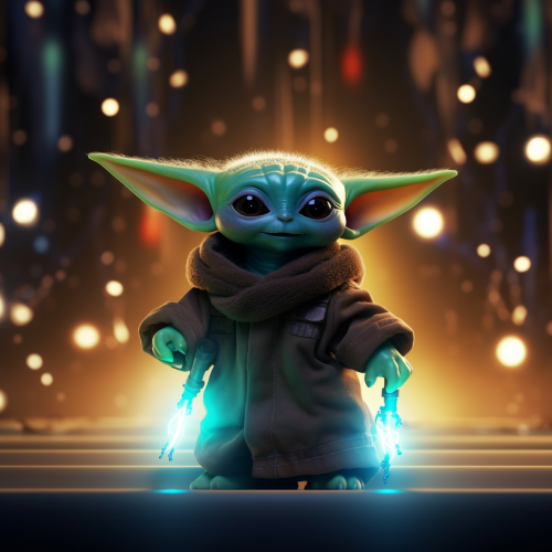 poster of junior baby yoda from star wars.on the background herous of star wars