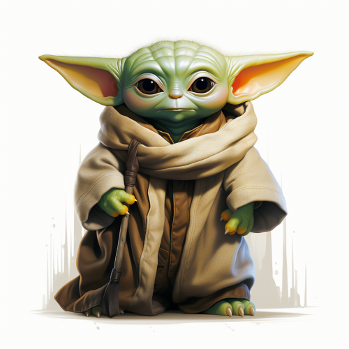 baby Yoda in Halloween style, Halloween vibe, very cute, without background, large details, the image is to be shown from the front, picture full of vivid and bright colors, perfectly solid white background--no background --ar 5:7