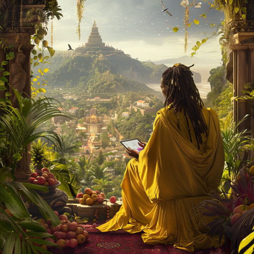 birds eye view of a sumerian city, babylon, hanging gardens, ziggurats, lush gardens, blotchy watercolor