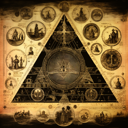 ancient alchemical symbolism, ancient babylonian symbolism, symbolizing "martyr", symbolizing "heretic"