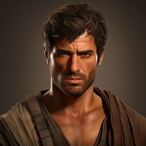 Subject: ancient Babylonian, Gender: Male Age: Appears in late 30s to early 40s Ethnicity: Mediterranean Physique: Athletic and muscular, broad shoulders Height: Tall Hair: Dark, slightly graying, short military-style cut, clean shaven Eyes: Deep brown, almost black, sharp but with a subtle sadness Facial Features: Rugged, strong jawline and cheekbones, numerous battlescars, clean-shaven Expression: Authoritative yet kind, a blend of integrity and subtle vulnerability Outfit: Decorative military armor, adorned with symbols of rank and achievement, well-worn Accessories: A shield emblematic of his rank Pose: Standing upright, assured yet humble posture - @Inksea (Waiting to start) Subject: ancient Babylonian, Gender: Male Age: Appears in late 30s to early 40s Ethnicity: Mediterranean Physique: Athletic and muscular, broad shoulders Height: Tall Hair: Dark, slightly graying, short military-style cut, clean shaven Eyes: Deep brown, almost black, sharp but with a subtle sadness Facial Features: Rugged, strong jawline and cheekbones, clean-shaven Expression: Authoritative yet kind, a blend of integrity and subtle vulnerability Outfit: Decorative military armor, adorned with symbols of rank and achievement, well-worn Accessories: A shield emblematic of his rank Pose: Standing upright, assured yet humble posture