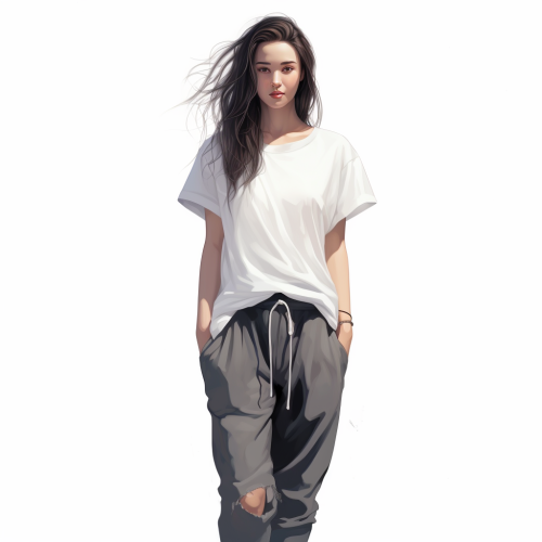 portrait of manga character wearing white baggy animal graphic t-shirt, wearing a chest holster, baggy tracksuit trousers, young adult female, long middle parted light hair, closed mouth smile, Yakuza, manga cover artwork, black and white, Kentaro Miura artwork style, Tite Kubo artwork style, 90s manga artwork, character design, manga panel, --v 6.0