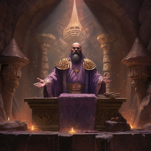 Bald dwarf in blue uniform with braided beard.