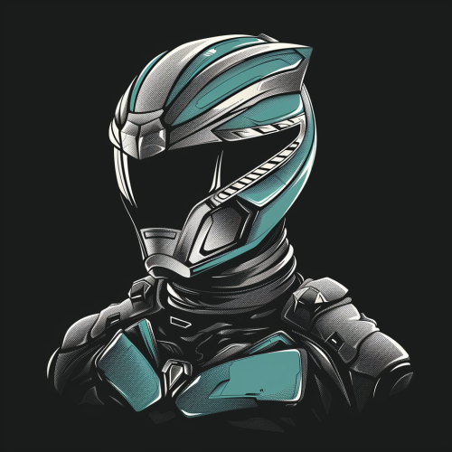 Anim style illustration, profile picture. Future soldier in a Power Ranger helmet. Tritone, black, white, and blue-green. Dark background. --style raw