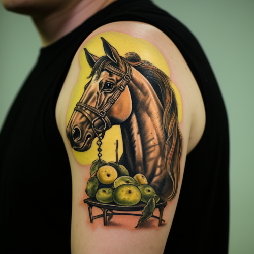 The horse lies in a field, with mint green background ice blue spots speckled, --ar 7:5 --v 6.0 --stylize 250