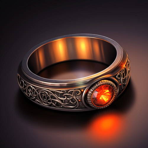 illustration of a simple ring band in dark metal with a a tiny fire magic stone embed --v 5.2