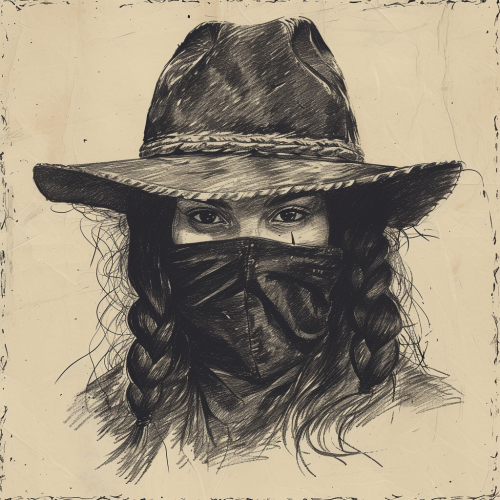 crude simplistic drawing from a bandit poster of female bandits face shot, depicted like mug shot --v 6.0