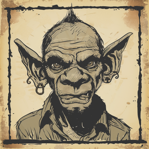 crude simplistic drawing from a bandit poster of male elf bandits face shot, depicted like mug shot --v 6.0