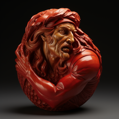 an apple carved like the shape of a male figur, photorealistic --s 250