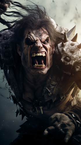 a human barbarian in a rage doing battle with a horde of orcs, style dark fantasy, high key | --ar 9:16 --chaos 2 --seed 145865125 --v 5.1 --s 50