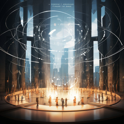 An architecture office with humans working in collaboration with Artificial intelligence forms, The eletric state style