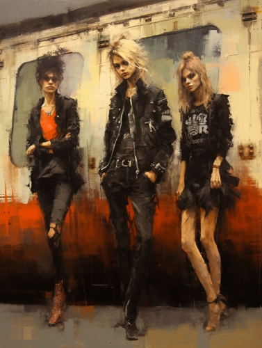 painting by Andre Kohn, queen of the punk rock scene, 1978 New York City, Debby Harry, Nancy Spungen, gritty, dirty --ar 3:4