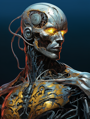 human with cybernetic parts,full body,eerie,american comic book style --ar 3:4 --v 5.2