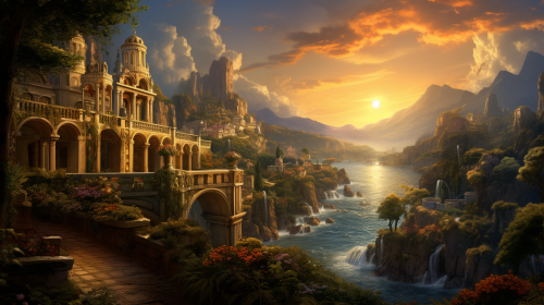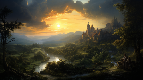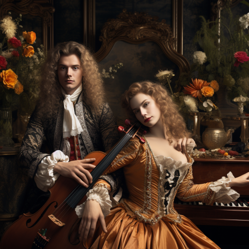 stunning baroque landscape, late 17th century, spectacular landscape, magic hour lighting, beautiful, grand, epic, baroque architecture, violinist --ar 16:9 --v 5.2