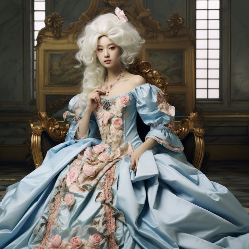 korean gravure model as miku as Marie Antoinette at Versailles --s 50