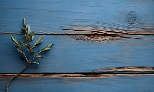 a blue tinted piece of wood with a plant growing from the stave --ar 100:59