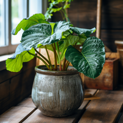 green cat plant in colouful pattern plant pot, style of adventure time illustration, in the style of Stacey Rozich masks