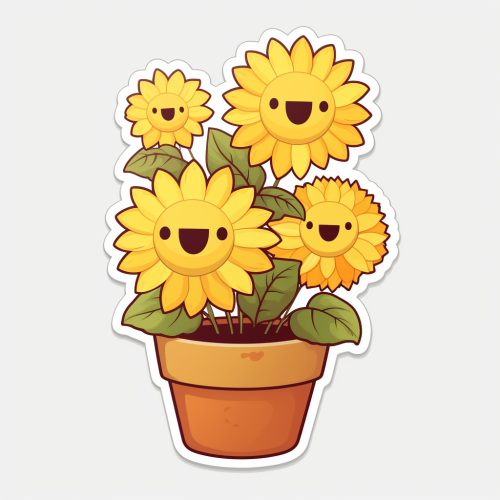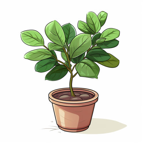 a line cartoon plant, medium size in a pot, on the floor, white background