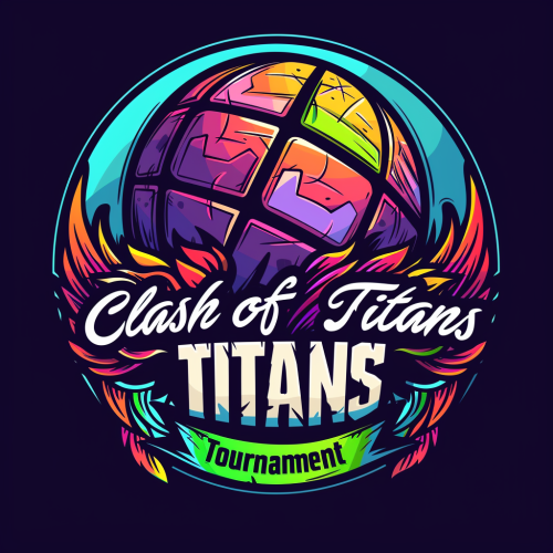 a logo for basketball competition with text "Clash of Titans Tournament", colourful --v 6.0