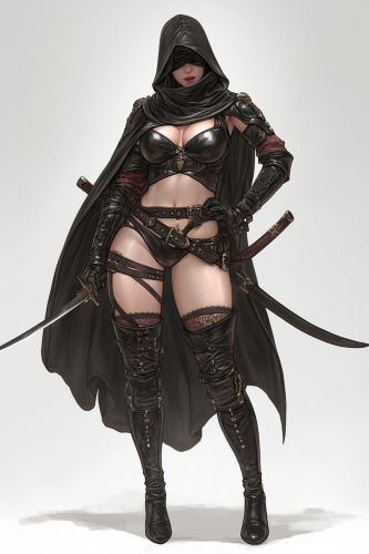Assassin Woman, full body, glamorous pin-ups, ultra realistic, highly detailed, --ar 2:3 --s 50 --niji 6