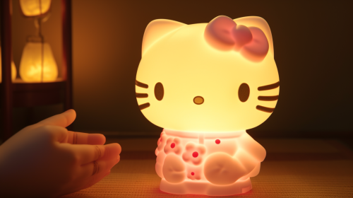 Close up of hello kitty character paws japanese style night in the shadows mysterious cute fantasy lighting ultra real 4k --ar 16:9