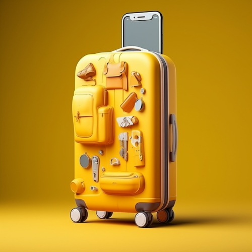Playful retro-style travel collage featuring iconic travel symbols like luggage, maps, and landmarks, with a vibrant palette of pastel pinks, oranges, and blues.