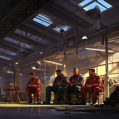 a team of firefighters relaxing at a modern european firestation, just hanging around, in the style of magali villeneuve, highly detailed environments, kevin hill, intense portraits, 2d game art, dynamic line work, aquirax uno, 8k