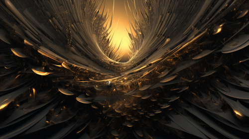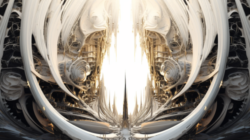 ethereal abstract celestial landscape filled with bone like blades forming an otherwordly temple, detailed, angelic, demonic, black stone, bone white, gold metal, cybersigilism, psychedelic, abstract background, --v 5.1 --ar 16:9