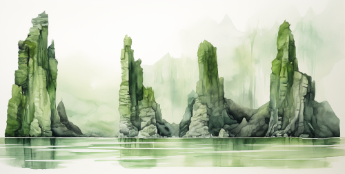 green three layered lanscape of rock pillars in water color style --ar 275:139 --v 5.2