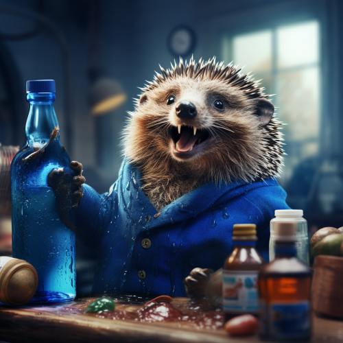 a digital ad for a discounted oil change. Blue oil is being poured from a bottle while a hedgehog looks on in delight.