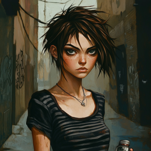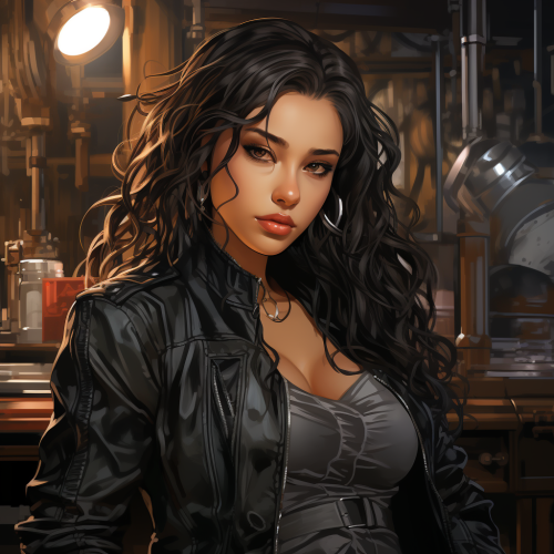 beautiful girl, early 20s, long midnight brown hair, white streaks in hair, tired eyes, deep soulless eyes, high to die for cheek bones, neutral medium ebony skin, thick eye green ,sassy, black leather outfit, waist high image illustrated anime, thick and plump brown lips,epic scene, coquette pose, maximum details, perfect drawing,full body shot,--niji 5 --s 950