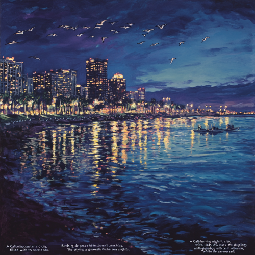 Create a mesmerizing and dreamlike midjourney scene set in a coastal Indian village. Capture the essence of a brown boy, 4 feet tall, standing on a tall homemade ladder reaching towards the stars. The camera perspective should be from behind, ensuring the boy's face remains unseen. The boy is halfway up the ladder, pointing towards a particular star in the sky. The sky itself should look both real and dreamy, enhancing the magical atmosphere of the moment. Pay attention to lighting, color grading, and the overall visual ambiance to evoke a sense of wonder and curiosity. make sure it is in impreesionist painting style and the boys hand should be pointing a star